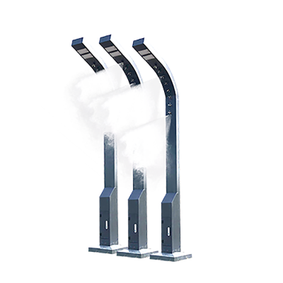 为发烧级运动爱好者和公园赛事研制,含3根高颜值喷淋杆,超声波水雾,覆盖范围达20平米,可同时为6-8名选手进行体表降温。